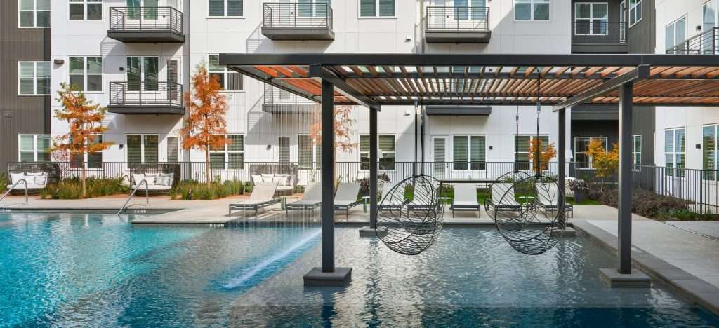 4600 Ross introduces contemporary apartment living to Old East Dallas, positioned between the lively districts of Deep Ellum and Lower Greenville. The community places residents close to dining, music venues, and cultural destinations while remaining just minutes from downtown. Designed with a modern urban character, the building features expansive windows, high ceilings, and shared spaces that encourage relaxation and connection. Outdoor lounges, a resort-style pool, and a sky deck overlooking the Dallas skyline create places to gather, unwind, and enjoy the city from above.