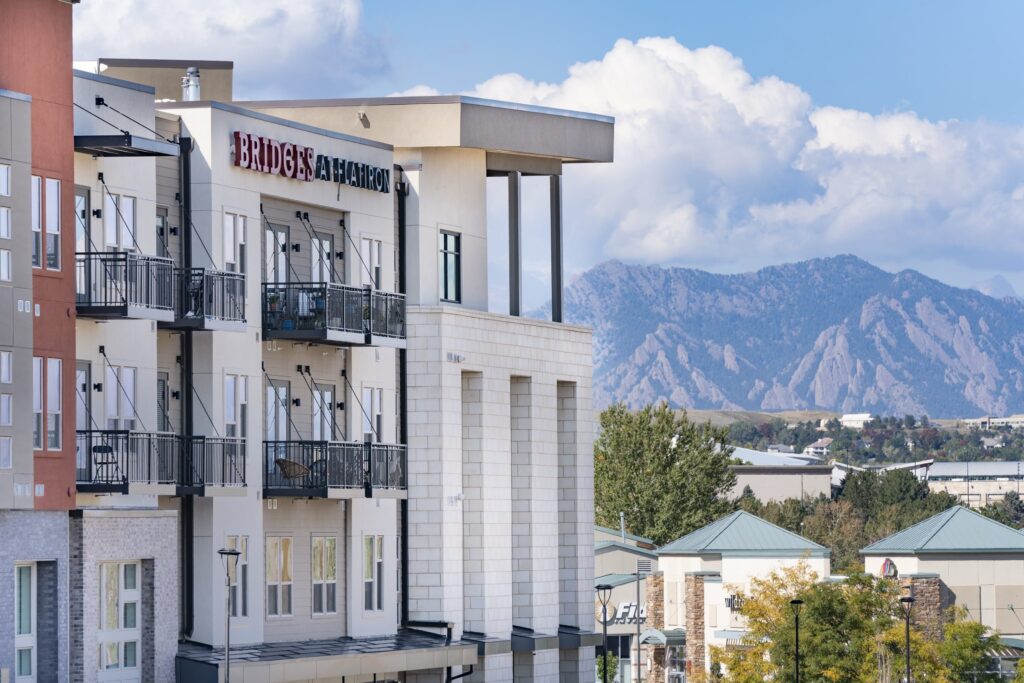 Bridges at Flatiron is shaped by a simple idea: let the landscape and the journey lead. From the Boulder Turnpike, the community announces itself with confident presence; at home, windows and walkways turn toward the Flatirons, framing Colorado’s daily drama. Its name nods to Broomfield’s bike bridges and the mountains beyond; celebrated through bike-friendly connections, on-site storage and repair, and an easy rhythm between movement and rest. With a mix of conventional and income-qualified homes, it supports a more inclusive kind of belonging.