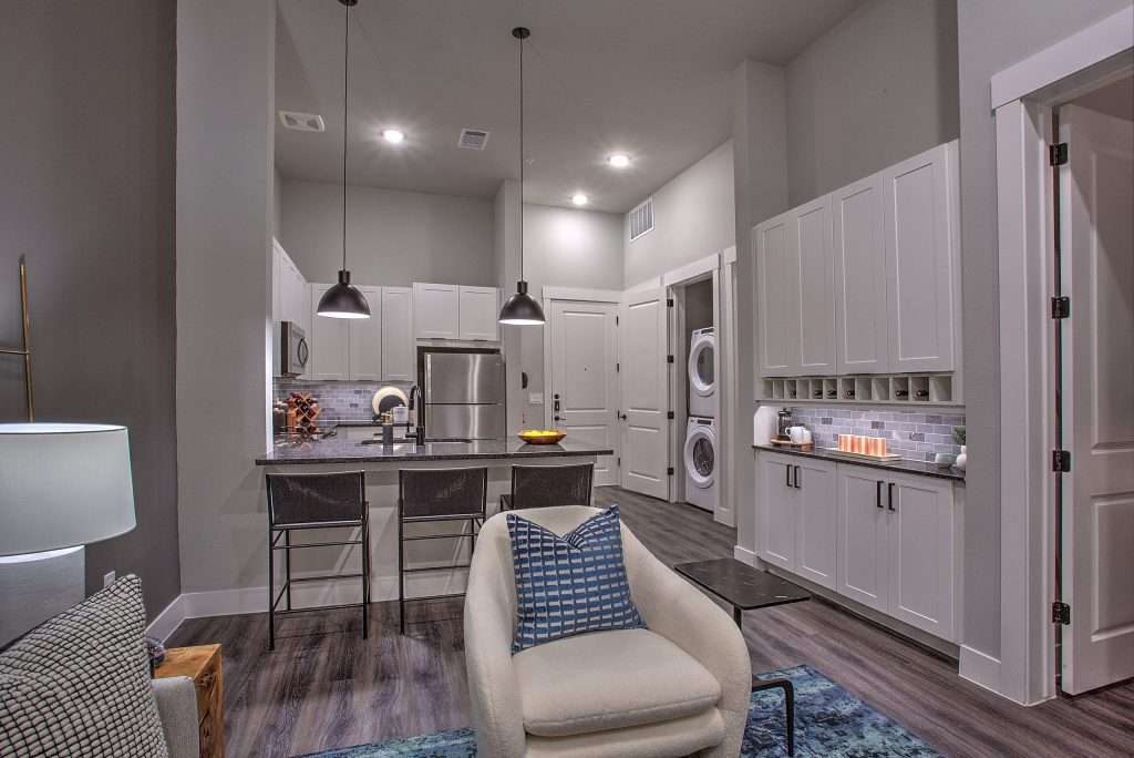The five-story development features a mix of studios, one- and two-bedroom layouts, and townhomes. Every residence and amenity space was designed for elevated living and connectivity, offering built-in desks, USB outlets, co-working areas, and 5G Wi-Fi throughout. Upscale shared spaces enhance comfort, productivity, and social engagement.