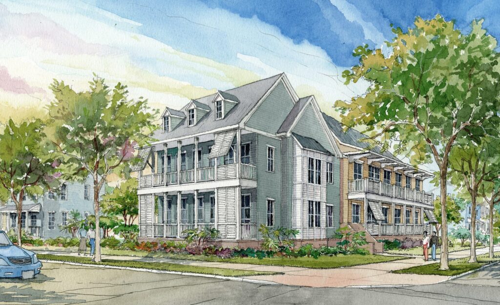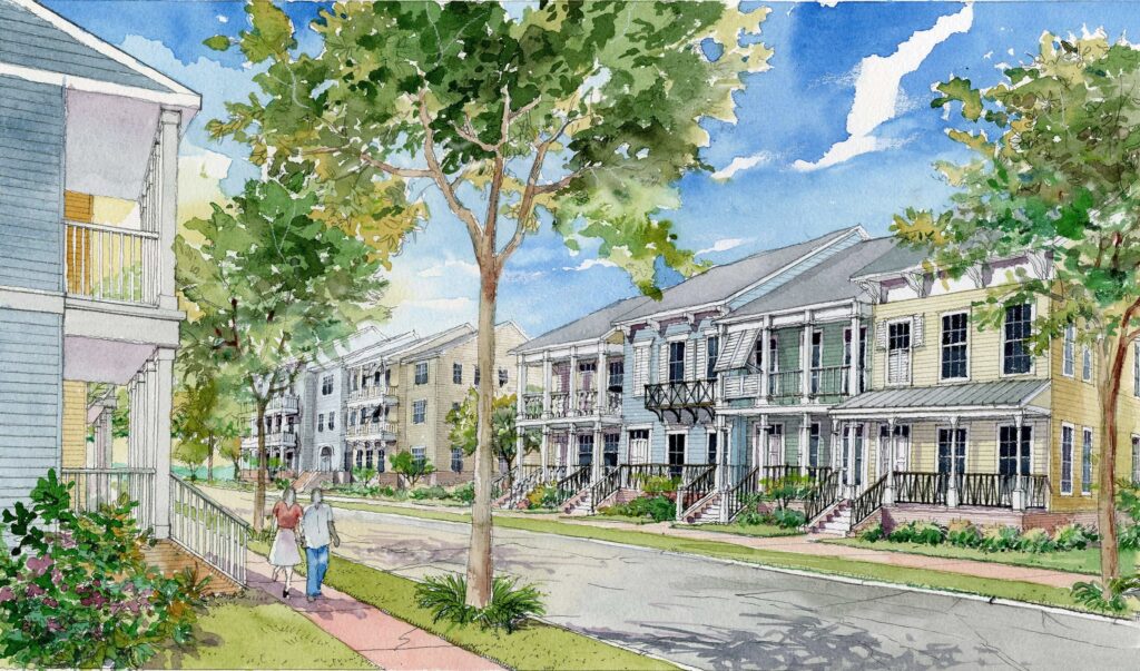 Working in partnership with Columbia Residential, JHP led the comprehensive redevelopment of the 23-acre site into Columbia Parc, a mixed-income neighborhood grounded in traditional urban principles. The damaged structures were fully removed and the historic street grid was restored, breaking the site into 17 walkable blocks that reconnected the neighborhood to its surroundings. Implemented in multiple phases, the plan introduced a diverse range of housing types and tenures, including townhomes for public housing, tax-credit, and market-rate residents, as well as a dedicated senior living phase with both building-based and cottage-style residences.