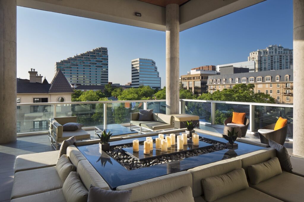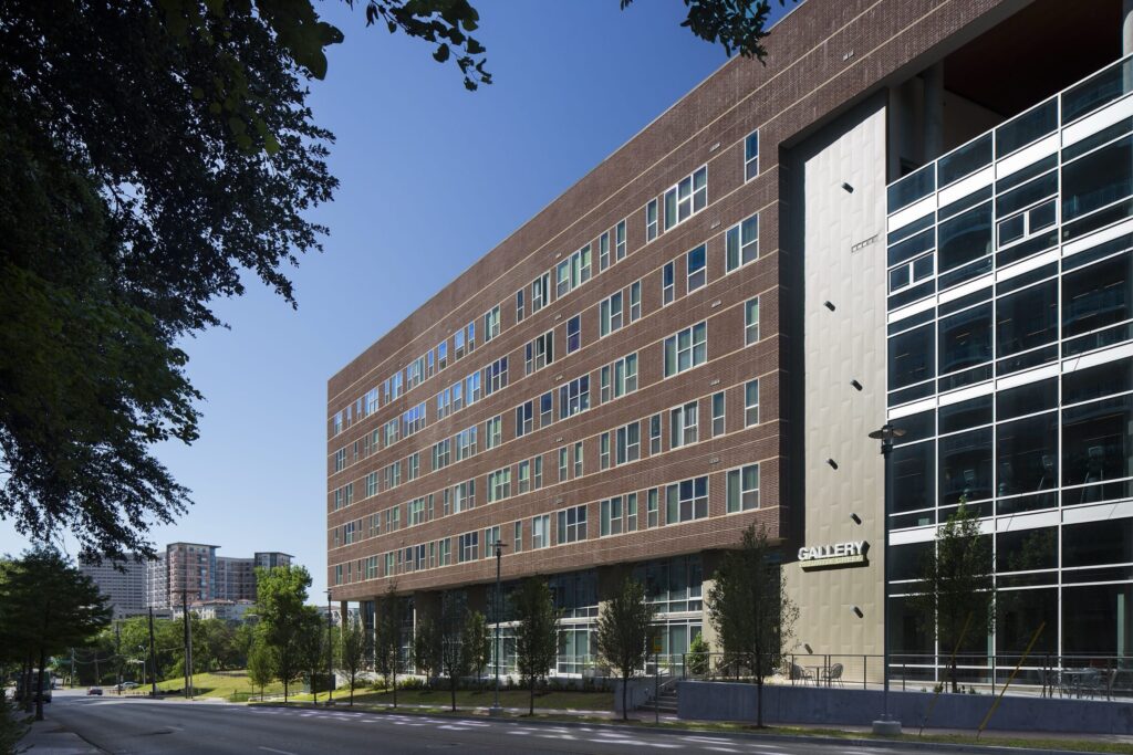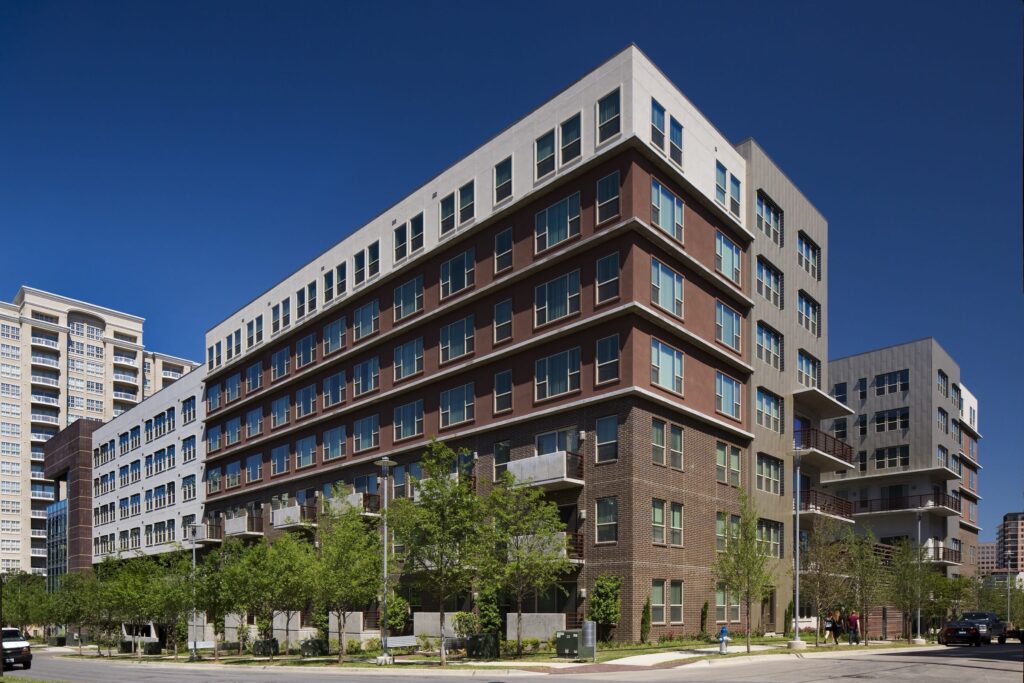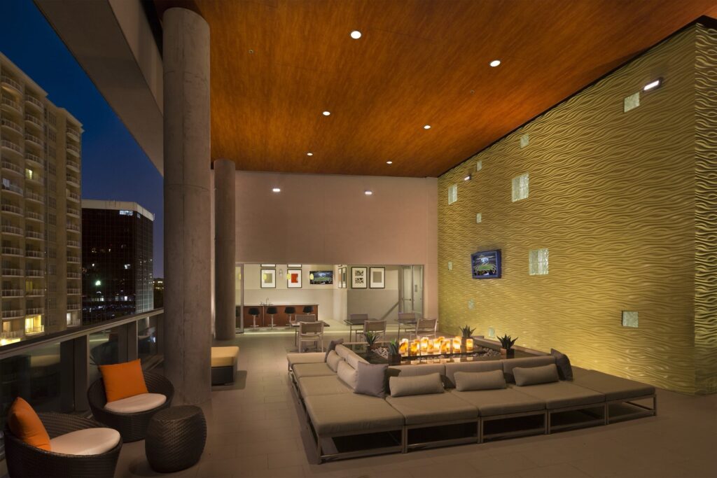 Gallery on Turtle Creek Phase One rises above Oak Lawn as a refined urban landmark, offering a high-rise sensibility grounded in elegance and ease. Framed by skyline views and lifted by a serene pool terrace, the building creates a quiet retreat within the city’s most vibrant neighborhoods. Steps from the Katy Trail and surrounded by Uptown’s nightlife, it balances energy with escape. Stacked amenity spaces form a vertical social hub, wellness and fitness spaces below, and an elevated rooftop terrace above, where sculptural seating, a performance kitchen, and sweeping views set the stage for unforgettable urban moments.