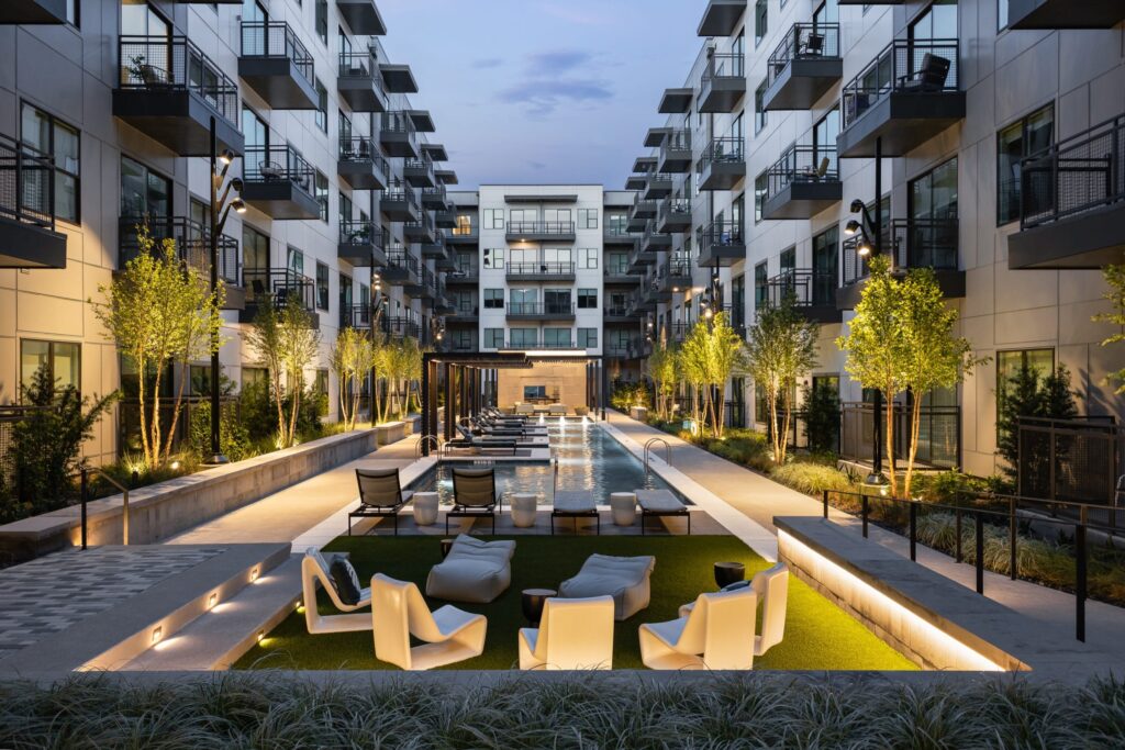 Lantower Midtown is shaped for modern urban living along North Central Dallas, where architecture, amenity, and location work seamlessly together. Clean lines and warm materials create a calm, contemporary backdrop for everyday life, while thoughtfully layered amenities–from resort-style outdoor spaces to fitness, coworking, and social lounges–support both energy and ease. Pet-friendly features and walkable access to nearby employment centers, retail, and dining further connect residents to the rhythm of the city. The result is a refined living experience that feels polished, convenient, and effortlessly connected.