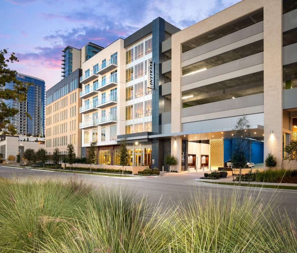 Part of the Legacy West development, which JHP also planned, the 161-unit Instrata offers luxury living beautifully integrated into the lively mixed-use development. Starting at the beginning of the journey where residents enter the building through an elevated foyer that integrates the luxurious language of the surrounding site, Instrata is already a design that stands out among its competitors. Its clear organization of the units and amenities not only allows for the privacy above a luxurious podium and site but, more importantly, it allows residents to live there with comfort and class. Along with the onsite amenities, residents are within walking distance to shops, entertainment, and restaurants, and an iconic food hall at Legacy West while enjoying the breathtaking views all around. Through these amenities and the integration of the surrounding luxury commercial spaces, residents living Instrata get a package beyond the footprint of the building. Rather, they have access to the community built beyond the footprint.