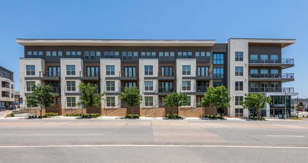 The Nash brings new residential energy to Dallas’ evolving Midtown district, an area shaped by earlier streetscape improvements and growing redevelopment momentum. Located near the Walnut Hill DART station and major medical employers, the community supports a more connected, transit-oriented lifestyle for residents who value walkability and proximity to work. Ground-level stoops along Rambler Road activate the street and create a more neighborhood-scaled edge, while the development contributes new housing and everyday activity to a district steadily transforming into a vibrant urban corridor.